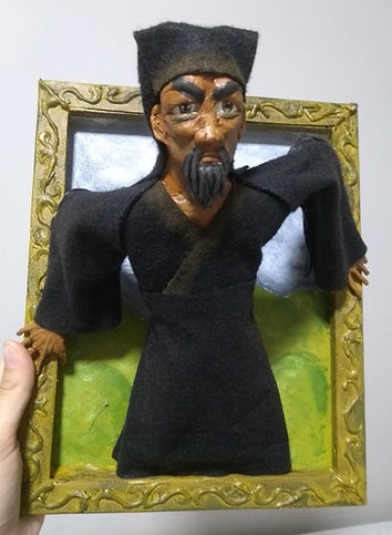 Baseado no conto "O Retrato", de Nikolai Gogol. Escultura em biscuit, pintura em tinta acrílica. (2018)